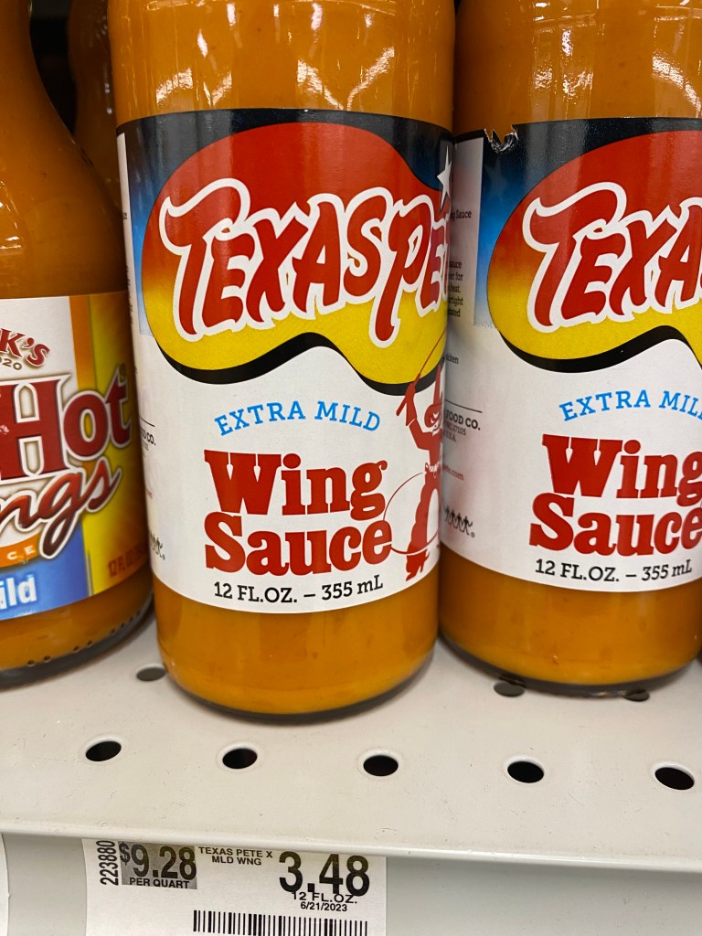 And suppose Texas Pete doesn’t have a good return policy. Then I’d be stuck with this extra “Extra Mild” wing sauce.
